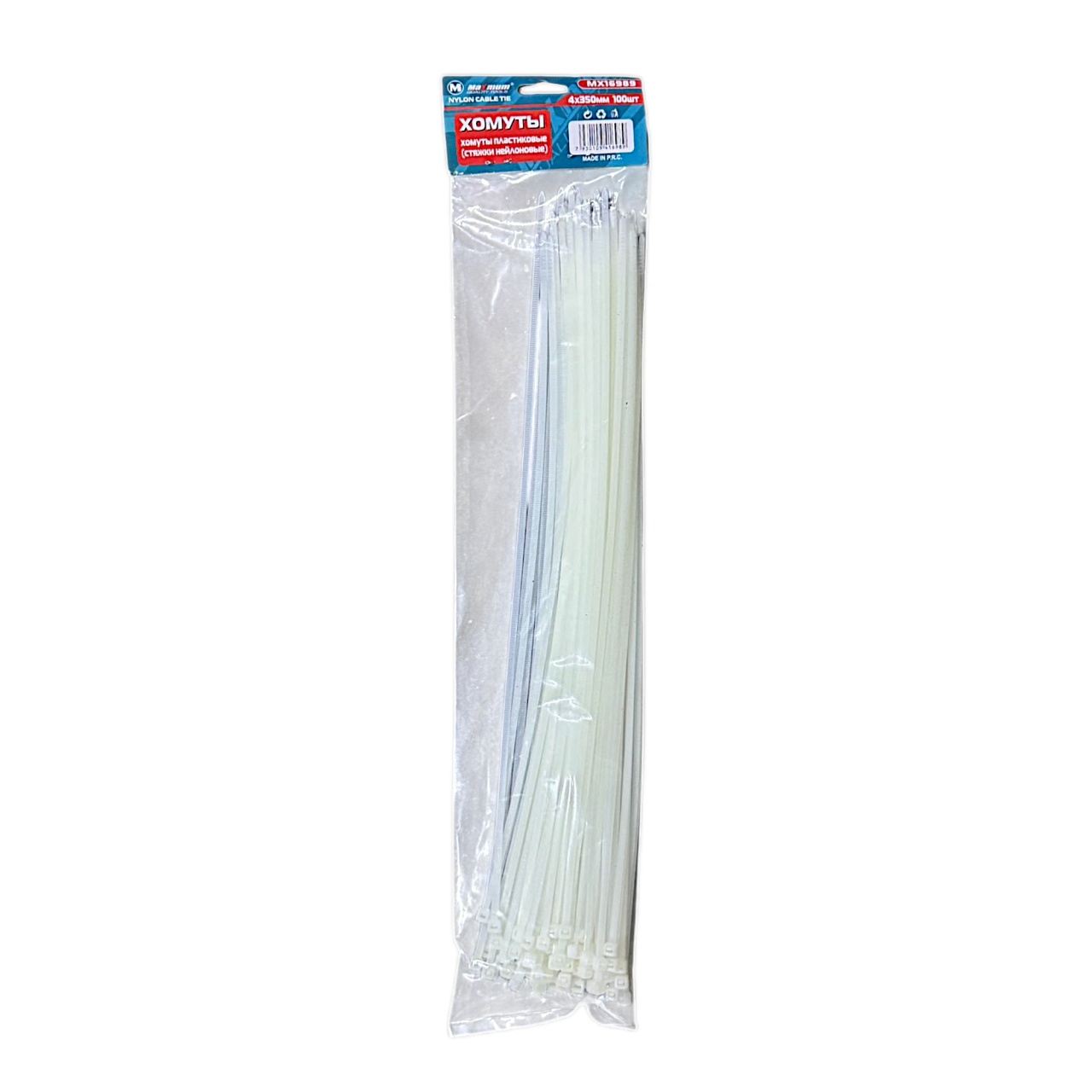 Белые нейлоновые хомуты-стяжки 4x350 мм от "Maximum" — это оптимальный выбор для профессионального монтажа. Нейлоновые хомуты длиной 350 мм созданы для решения сложных и объемных задач.